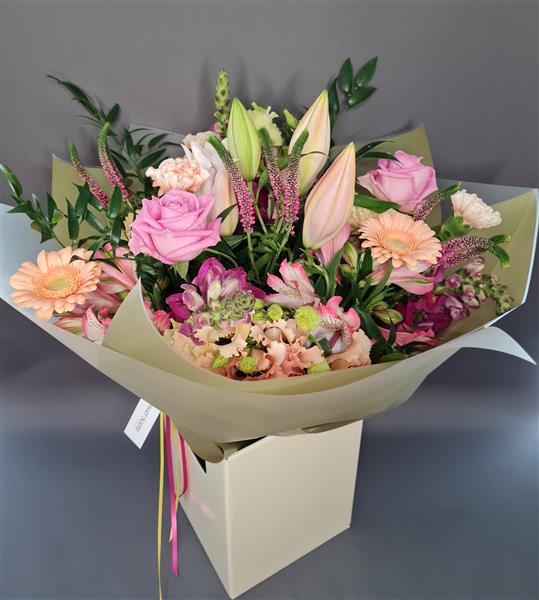 Our team of skilled florists will select the very best flowers of the day to design a beautiful hand tied bouquet.